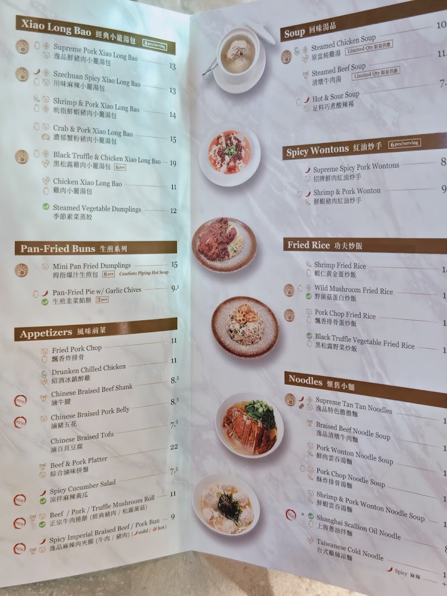 The menu is a treasure trove of tantalizing options, featuring standout dishes such as the Supreme Spicy Pork Wontons ($11.50) that deliver a kick of heat alongside a whirl of savory flavors. Alternatively, dive into their Xiao Long Bao—the juicy soup-filled dumplings that are not just a meal, but a moment to savor. For those craving a hearty meal, the Fried Pork Chop ($12.50) serves up a perfect crispy outside and tender inside, ensuring it's a dish you won’t soon forget. Add a refreshing Sour Plum Juice ($5.50) or an Iced Wintermelon Tea ($5.00) to wash it all down, and you’ll experience a symphony of textures and flavors that will have your taste buds dancing.