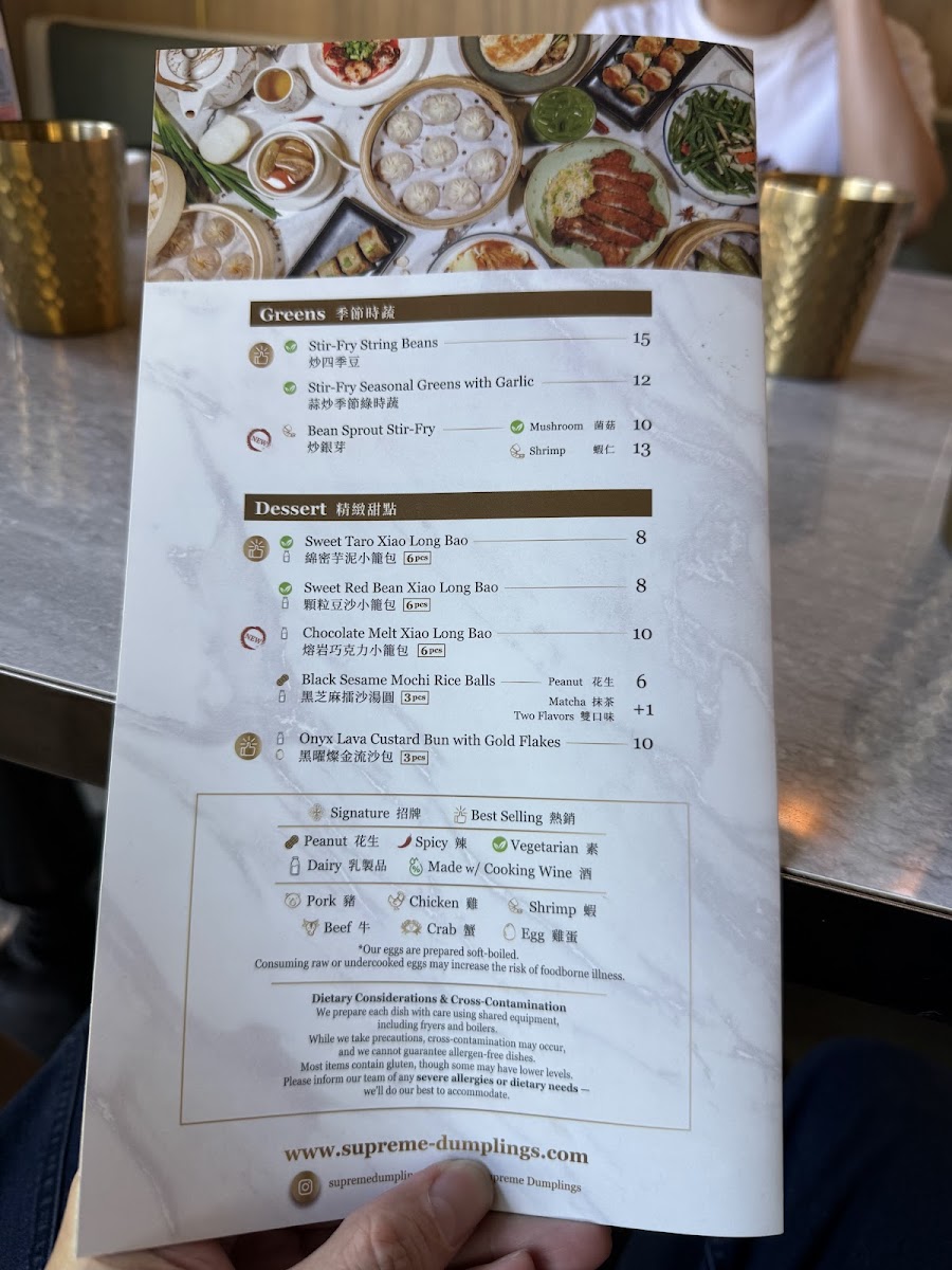 Customer reviews echo the praise, with frequent mentions of the Custard Bun—a dessert that has captured the hearts of many, described as "the best." Melanie Y. notes, “I recommend the Supreme Spicy Pork Wontons, Supreme Pork Xiao Long Bao, and Custard Bun.” Reviewers like Brittney Ma commend the place for mirroring offerings similar to renowned Din Tai Fung but without the agonizing wait times, making Supreme Dumplings a more accessible gem.